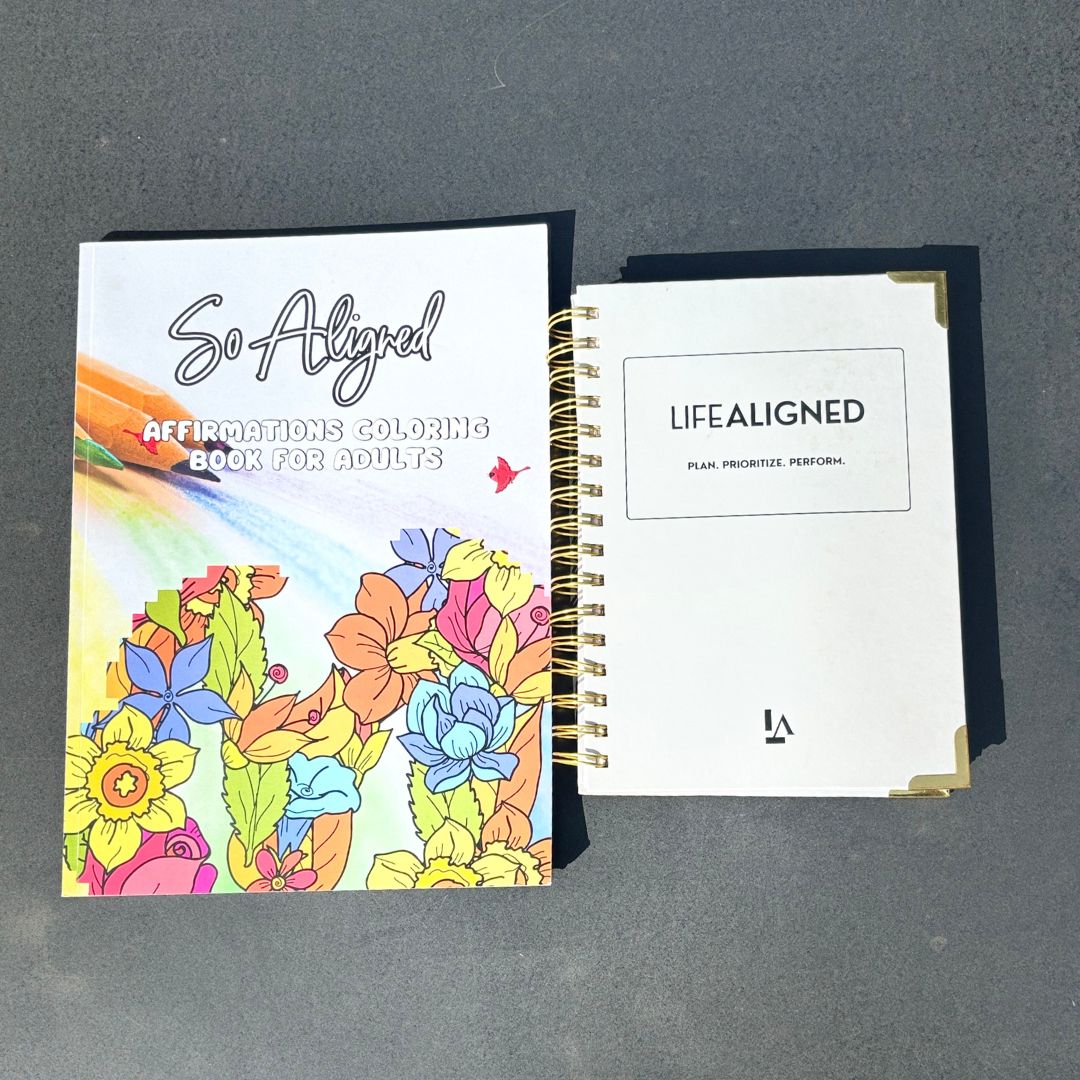 The “So Aligned” Affirmations Coloring Book invites you to slow down and recharge through art and affirmations — 52 designs that nurture calm and creativity.